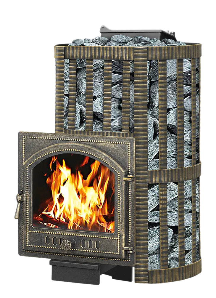 Банная чугунная печь "Ураган Ковка 16 (505)" оснащена герметичной чугунной дверцей "Везувий 505" с жаропрочным стеклом SCHOTT ROBAX. Закрытая стальная каменка вмещает до 60 кг камней. Конвекционно-вентилируемый кожух "Ковка" выполнен из прочной металлической полосы (6 мм) с термостойким покрытием и патиной "Бронза". Печь имеет топочный тоннель, позволяющий топить ее из смежного с парной помещения.
