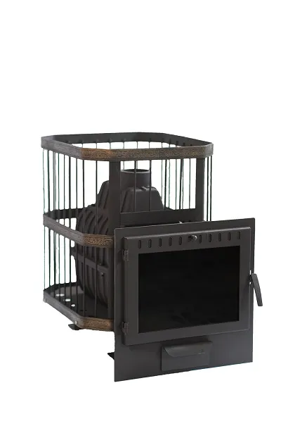 Печь банная чугунная "СИБИРЬ-20". Панорамная дверца (Сетка)