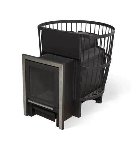 Печь оснащена герметичной топкой, позволяющей использовать дрова или брикеты в режиме длительного горения, поддерживая тепло в парилке на протяжении долгого времени.