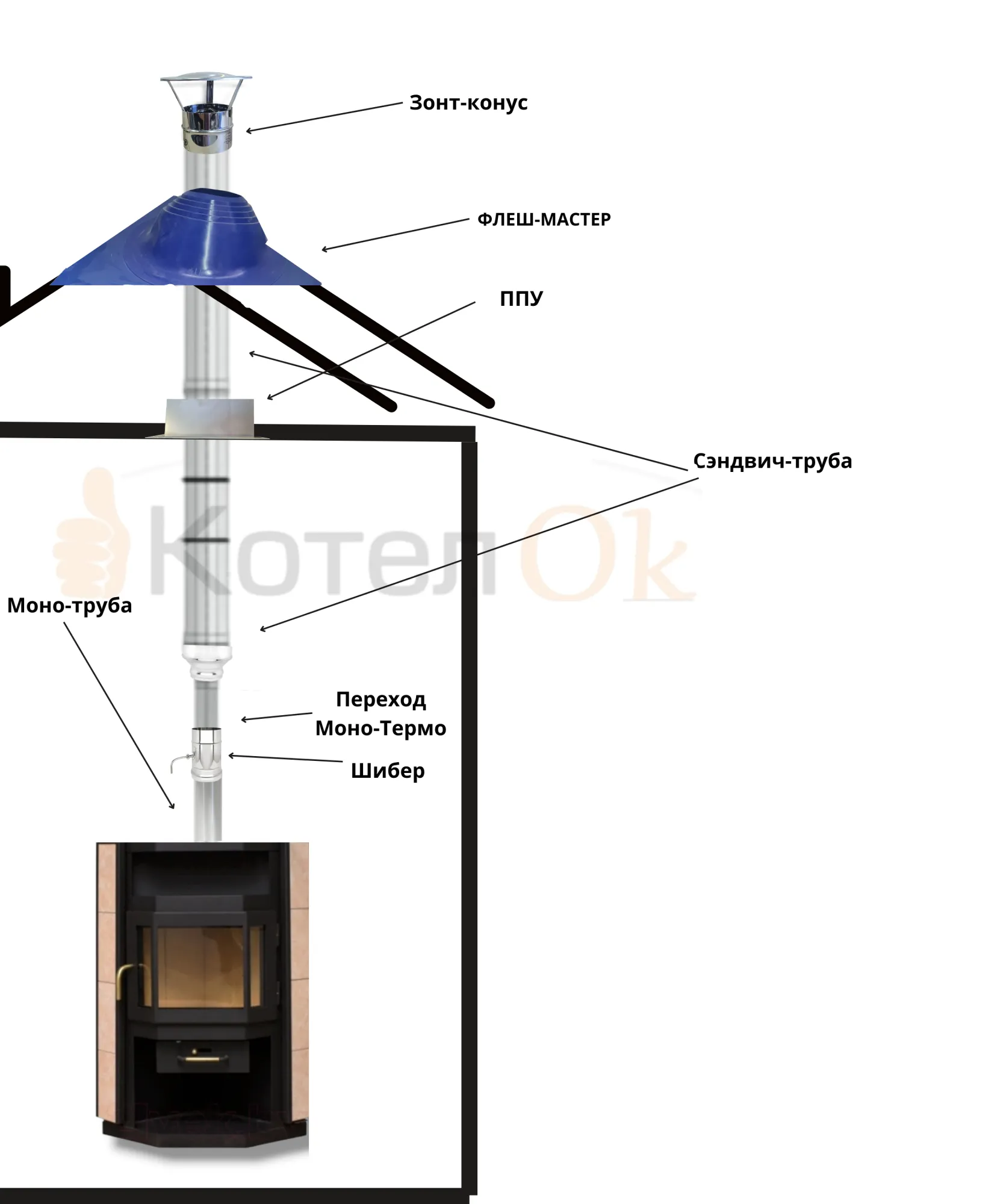В сэндвич-трубе специализированный (жаростойкий) утеплитель