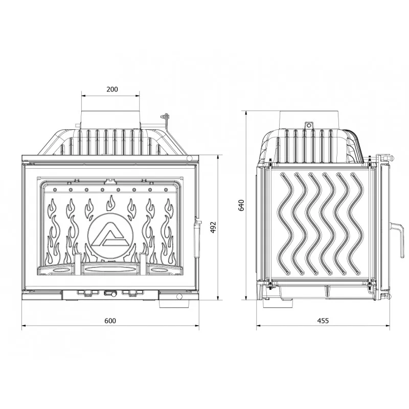 - И на конец стоит отметить более точную регулировку первичной подачи воздуха через нижнюю часть дверцы под колосниковую решетку, открыв ее на максимум, вы подаете к дровам оптимальное количество воздуха для быстрого розжига.
