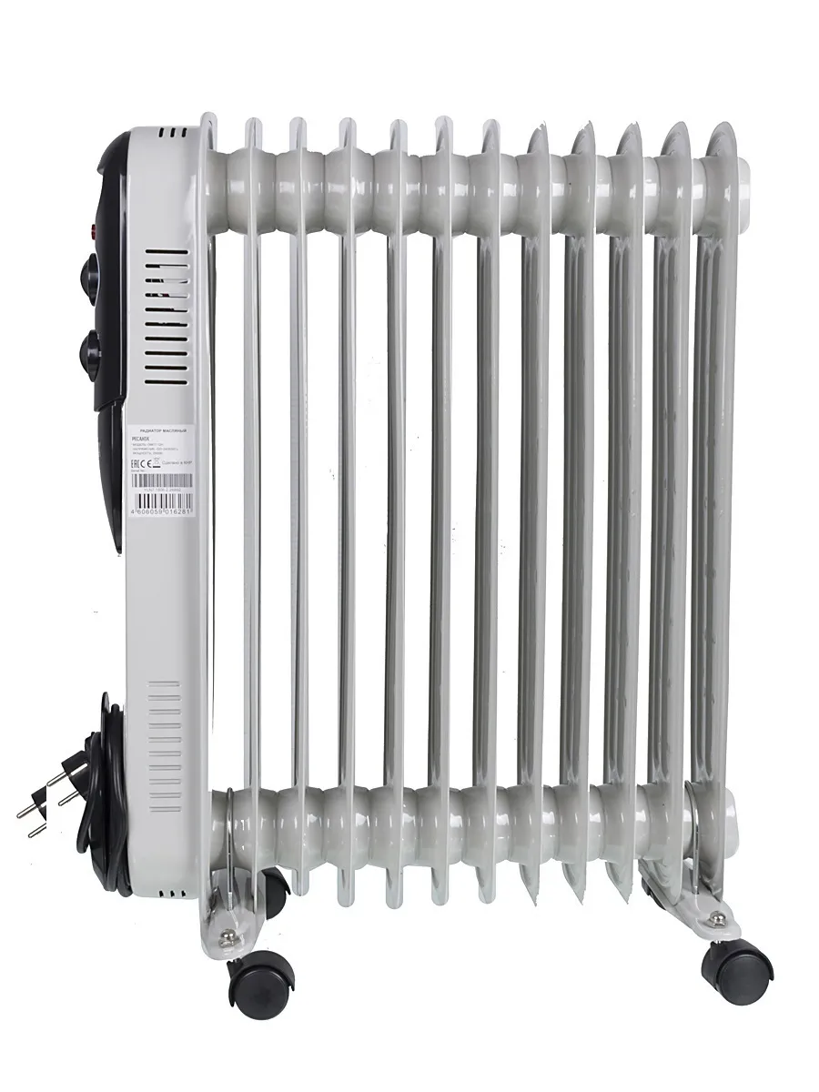 Особенности радиатора: Три режима обогрева, которые переключаются удобной ручкой. Термостат, который регулируется специальной ручкой и позволяет прибору автоматически поддерживать необходимую температуру. Световой индикатор позволяет контролировать рабочее состояние масляного радиатора. Для удобства перемещения конструкция прибора оснащена колесами.