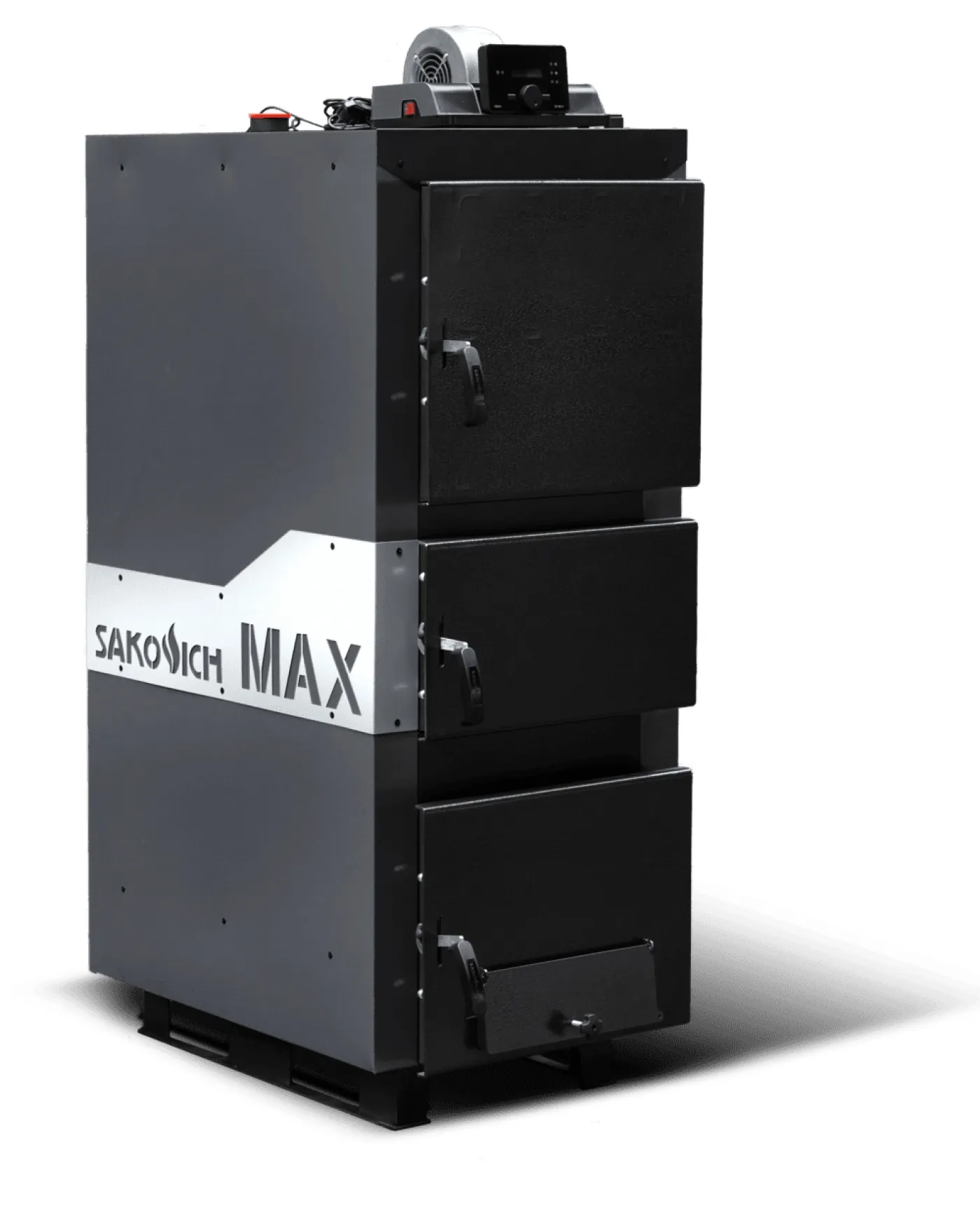 Котел твердотопливный Sakovich MAX может работать, как в ручном энергонезависимом режиме, так и дополнительно оснащаться средствами автоматики - контроллером с вентилятором. В этом случае аппарат будет поддерживать температуру на уровне, заданном пользователем, контролировать отвод дымовых газов, обеспечивать защиту системы от перегрева, заклинивания и замерзания насоса.